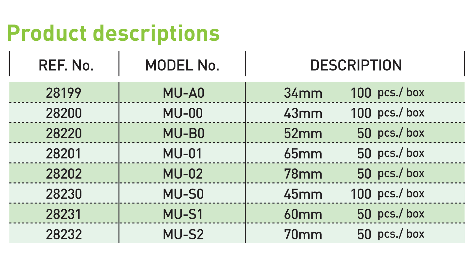 • Available in round (MU) and square (MU-SQUARE) types