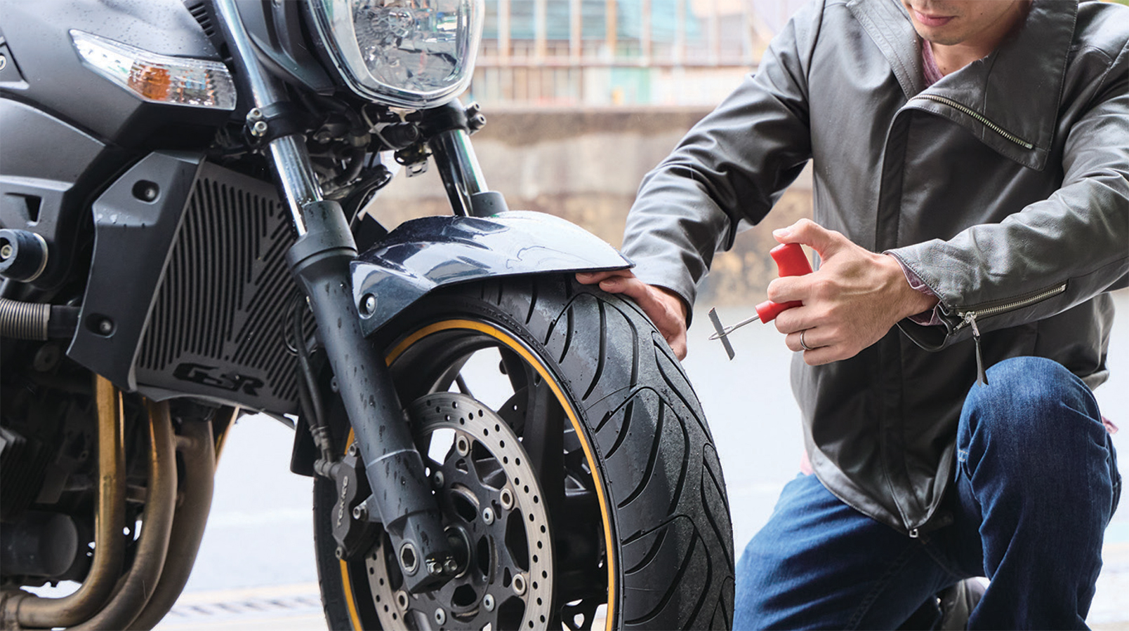 The TOURING REPAIR KIT is a compact tire repair kit designed for motorcycles.This kit includes essential tools and materials needed for emergency tire repairs during touring or long rides.Its compact case allows riders to easily carry the kit on their motorcycle for unexpected punctures.