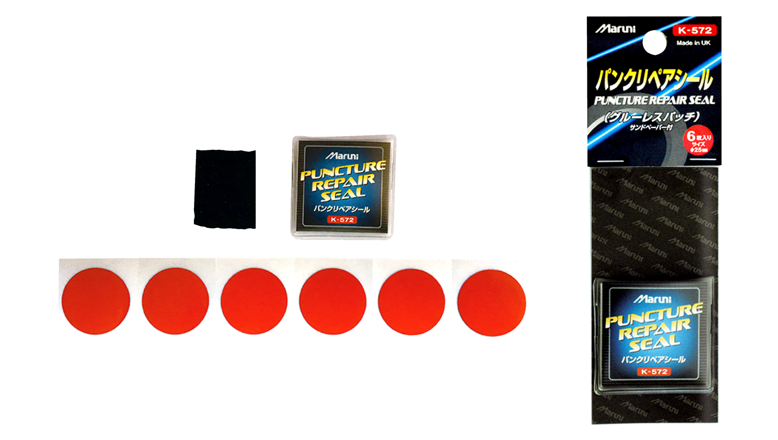 自転車チューブを確実に修理するために開発された、マルニの自転車チューブ用パッチです。一般軽快車から電動アシスト自転車、スポーツバイクまで、幅広い自転車チューブに対応し、日本中の現場で使われ続けてきたチューブ修理材として高い信頼を得ています。