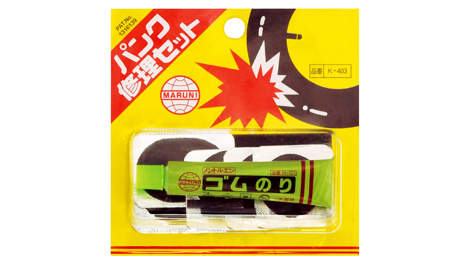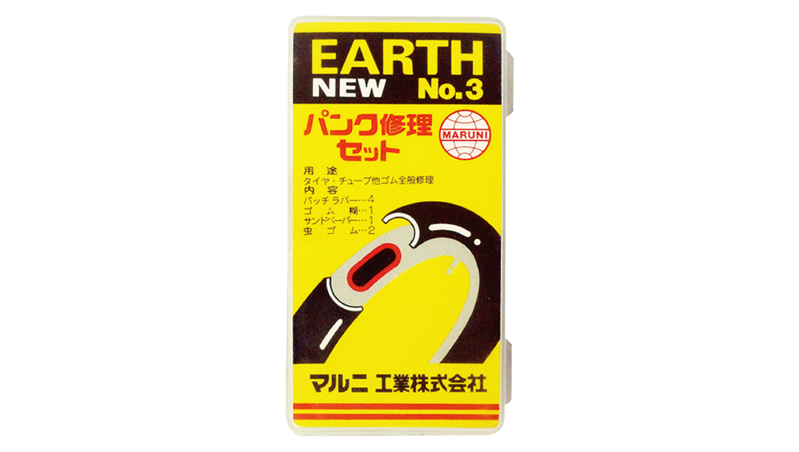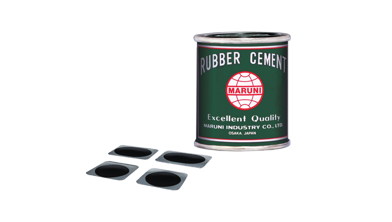 マルニのものづくりは、緑色の缶に入ったゴムのりとチューブパッチから始まりました。