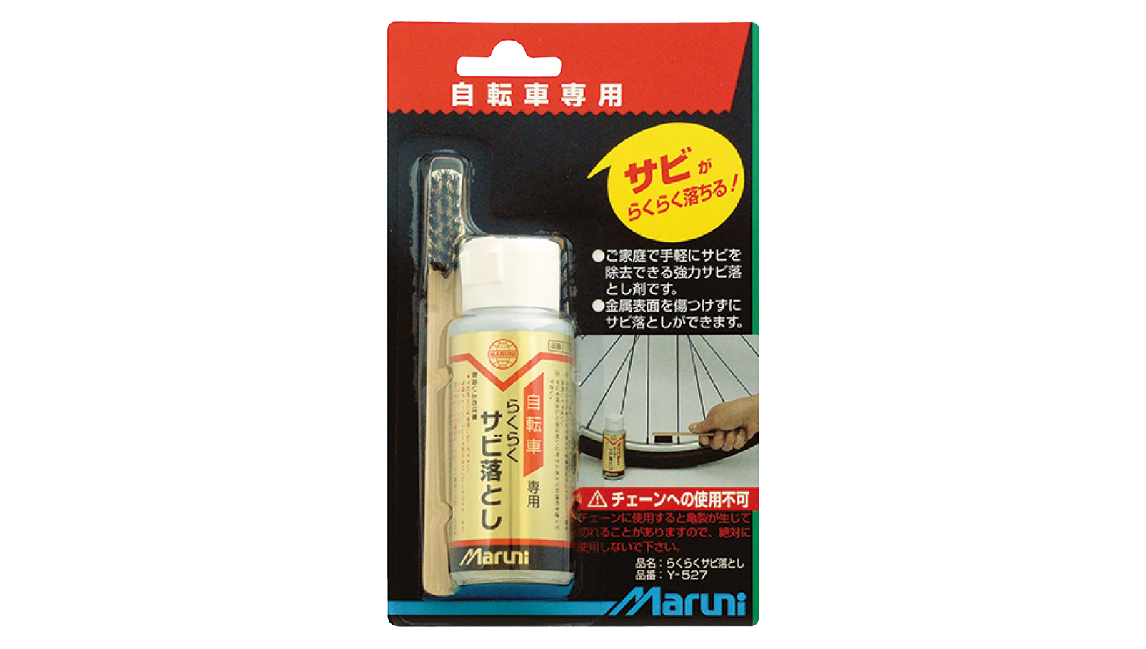 自転車に発生したサビを、車体を傷つけにくく落とせるクリーナーです。フレームやホイールなど、気になる部分のサビをやさしく除去します。