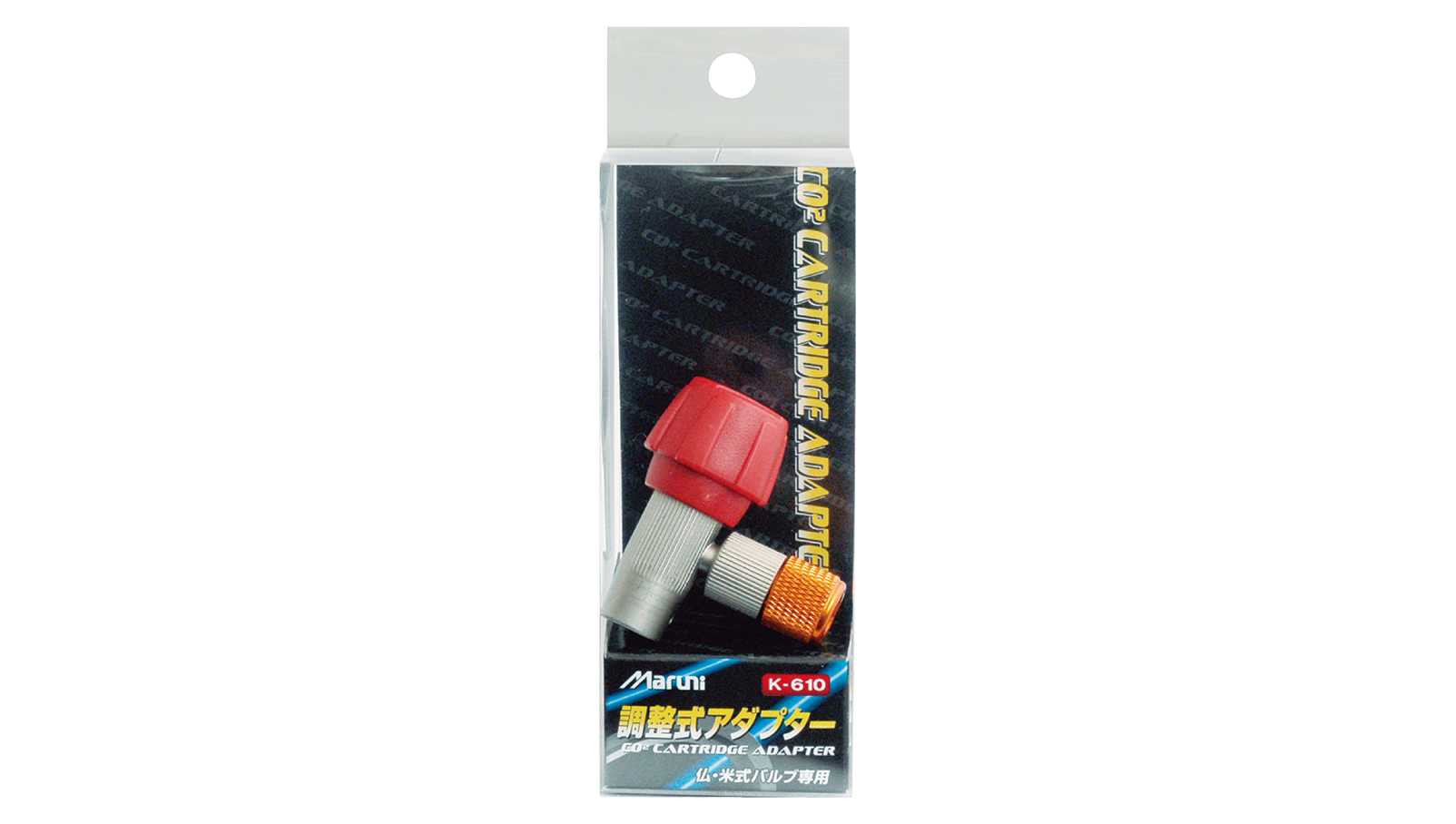 炭酸ガス(CO₂)ボンベを使用して空気の追い足しを行うためのアダプターです。エアの噴射量を調整できるコックを備えており、必要な量の空気をコントロールして充填できます。一般の自転車と比べて高圧の空気圧調整が必要なスポーツ系自転車の外出先でのパンク時や空気圧調整に便利なアイテムです。