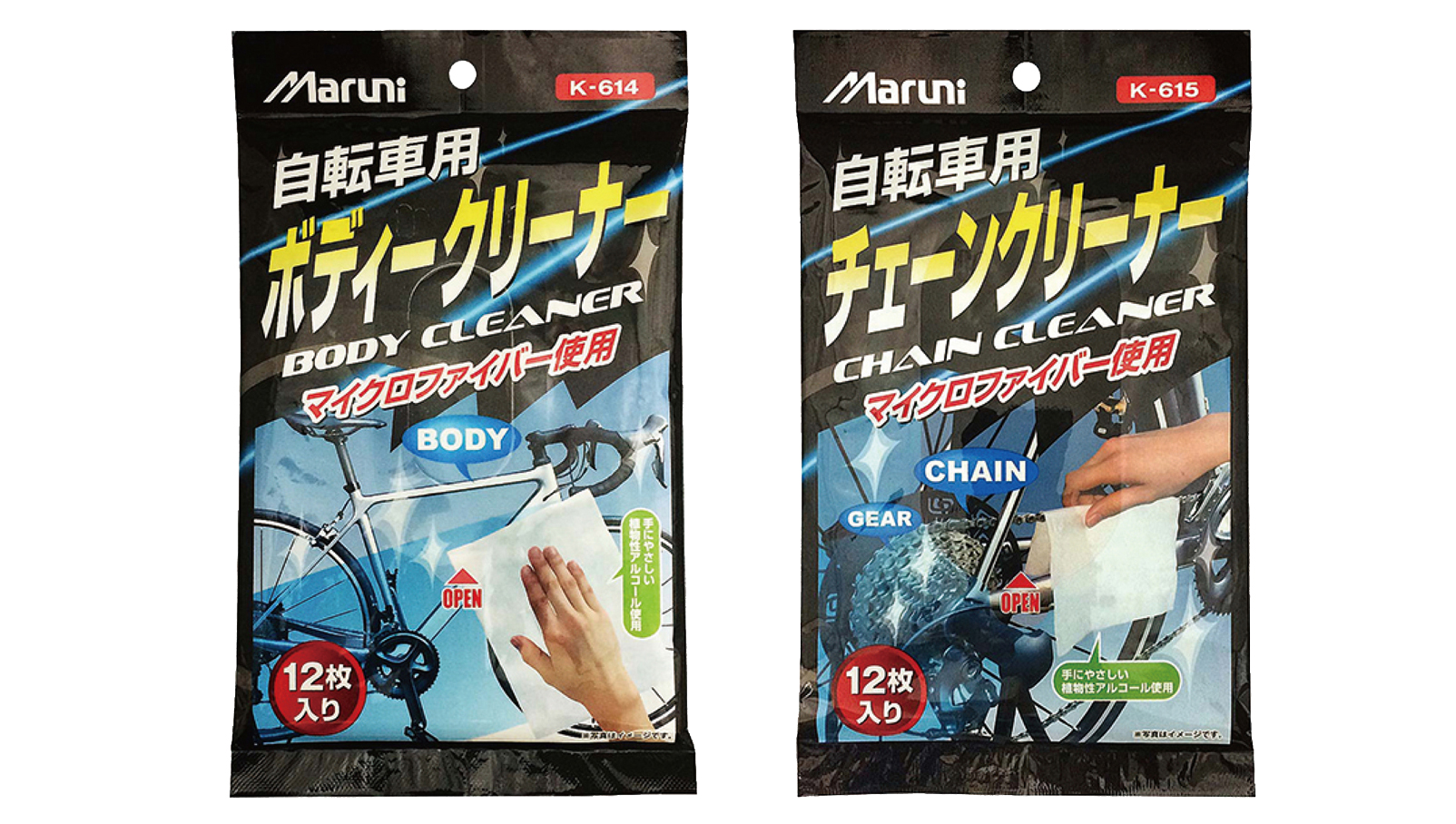 自転車の洗浄に手軽で便利なウエットタイプのクロスです。ボディ用とチェーン用があり、ボディ用は汚れ落としとワックス効果。チェーン用は油汚れやチェーンの汚れを手軽に落とすことができます。